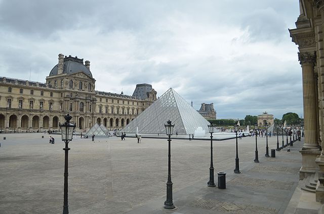 Betrachte noch einmal die Glaspyramide im Innenhof des Louvre. Die Pyramidenseiten sind hier mit Querstreben in einzelne Fensterelemente aufgeteilt.