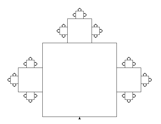 mit einer Grundlänge von 200 Pixeln gezeichnet. Teste auch diese Anweisungen: quadratpflanze(1, 200) und
