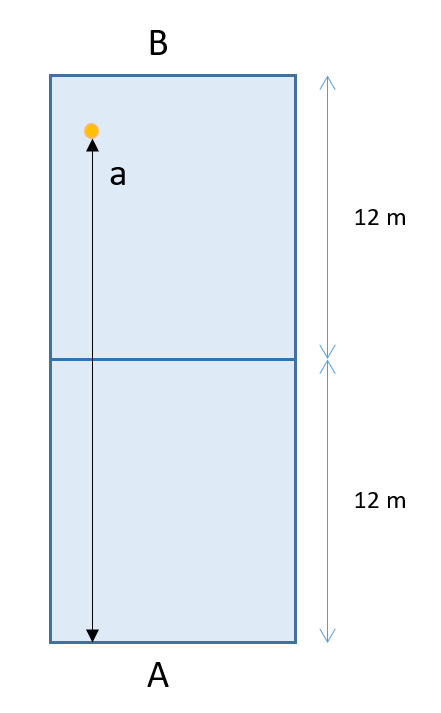 Zwei Tennisspieler(innen) – A und B – tragen ein Spiel aus. Das Spielfeld sei (etwas vereinfacht) 2-mal 12 Meter lang. Wir betrachten nur den jeweiligen Abstand des Tennisballs von der Grundlinie im Feld von A.