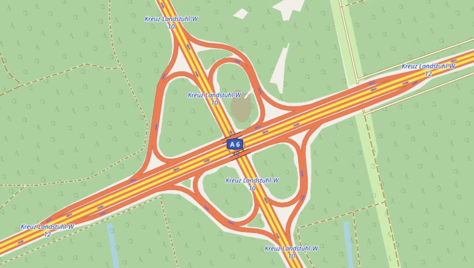 Das Autobahnkreuz Landstuhl-West hat die typische Form eines Kleeblatts.