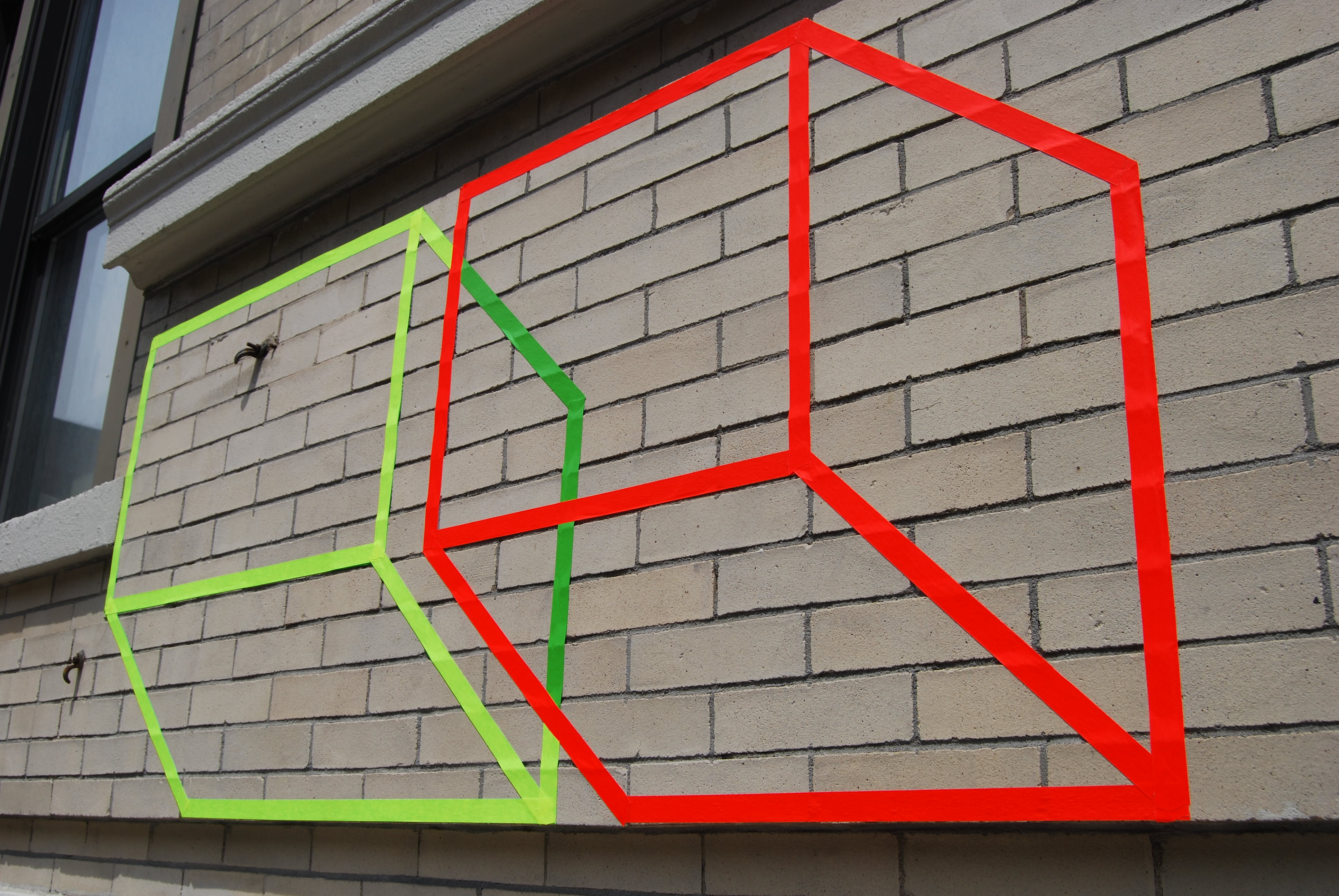 Eine Hauswand wurde mit Tapebändern verziert