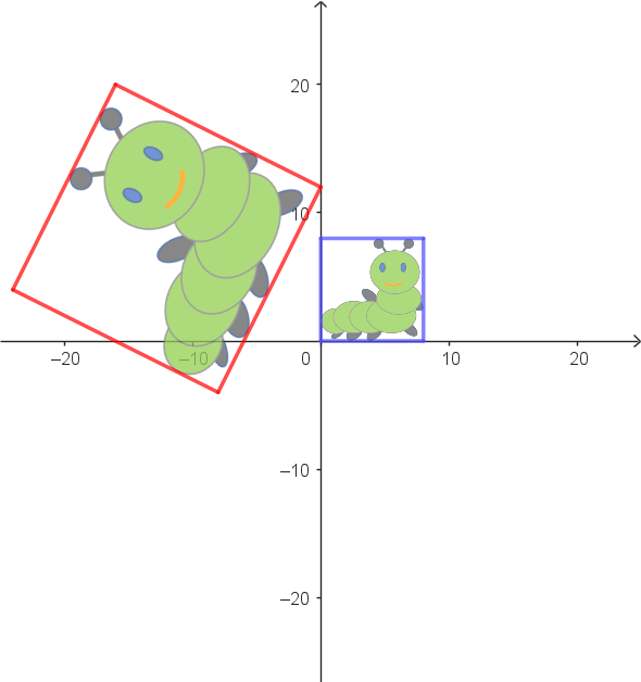 Vektorgleichung als allgemeine Zuordnungsvorschrift: $\begin{array}{llll} \alpha: & \begin{pmatrix} x_1 \\ x_2 \end{pmatrix} \\ & \quad\downarrow \alpha_1 \\ & \begin{pmatrix} 1 & -2 \\ 2 & 1 \end{pmatrix} \cdot \begin{pmatrix} x_1 \\ x_2 \end{pmatrix} \\ & \quad\downarrow \alpha_2 \\ & \begin{pmatrix} 1 & -2 \\ 2 & 1 \end{pmatrix} \cdot \begin{pmatrix} x_1 \\ x_2 \end{pmatrix} + \begin{pmatrix} -8 \\ -4 \end{pmatrix} \end{array}$ |