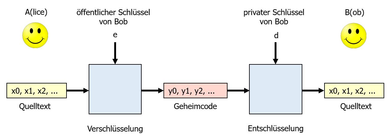 Der öffentliche Schlüssel wird – wie der Name es sagt – veröffentlicht, so dass jeder Zugriff auf diesen Schlüssel hat. Der private Schlüssel bleibt bei seinem Besitzer bzw. seiner Besitzerin. Diese(r) muss dafür Sorge tragen, dass niemand Fremdes Zugriff auf diesen Schlüssel hat. Denn, wer im Besitz des privaten Schlüssels ist, kann die mit dem öffentlichen Schlüssel erzeugten Nachrichten entschlüsseln. Mehr zu diesem Thema findest du z.B. auf Asymmetrische Chiffriersysteme.
